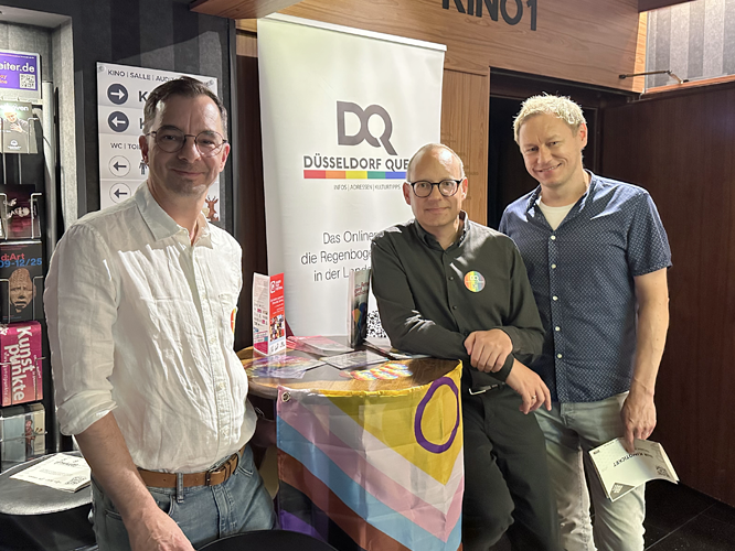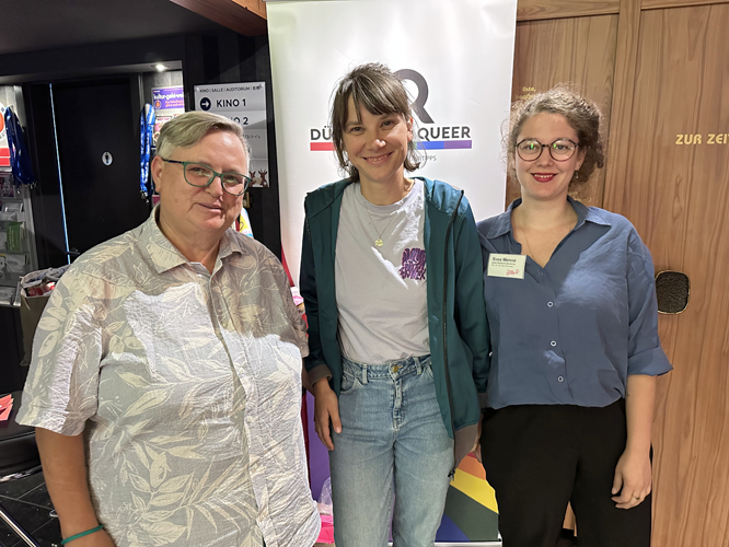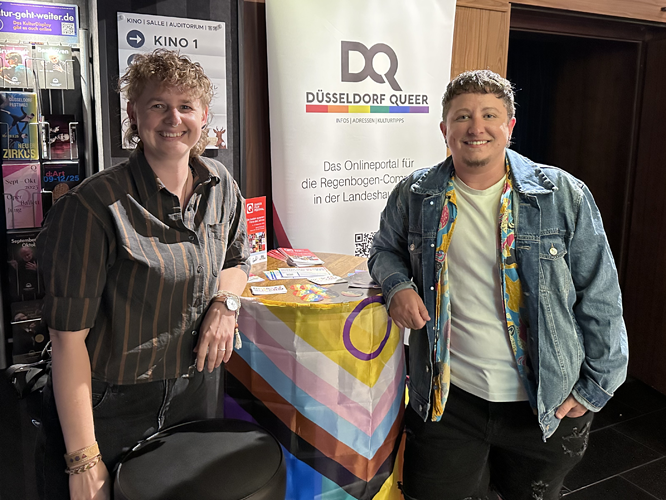 Das Programm des Queerfilmfestivals war in diesem Jahr wieder überaus vielfältig. Einige Filme waren kantig und rau, andere kunstvoll geschliffen – und zusammen zeigten sie die queeren Communities in all ihren Formen, Farben und Unebenheiten, mit ihren Geschichten, Erfahrungen und Ideen. Im Bambi-Kino sorgte Düsseldorf Queer als Kooperationspartner auch diesmal dafür, dass sich an jedem Filmabend lokale Gruppen, Organisationen und Projekte den Besucher*innen präsentieren konnten.